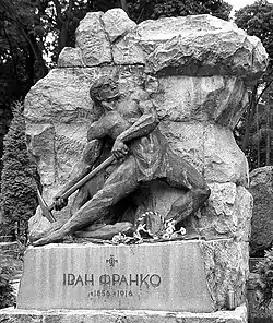 "Kameniari" (Ukrainian: Каменярі, lit. ''The Stonecutters", "The Stone-hewers''), is a poem by Ukrainian poet Ivan Franko (1856–1916). In this poem, slaves bound by chains smash through rock using sledgehammers. Written in 1878 as one of the author's first works,[2] the poem is allegorical, describing the twin ideas of liberation from an oppressive past (Polish, Russian and Austro-Hungarian rule of Ukraine) and of the laying down of a highway for future social progress by pioneers.[3][4]