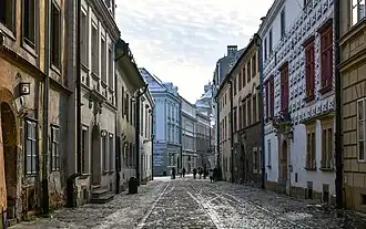 Kanonicza Street (Polish: Ulica Kanonicza, lit. Canon Street) - a historic street in Kraków, Poland. The street was once part of the hamlet of Okół, connected with Kraków in 1401. Formerly, the buildings along the street housed cathedral canons, and to this day many of their Baroque and Renaissance have remained present.[1]