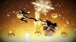 The Japanese animation industry traditionally drew every film cel by hand.[30] This is labor-intensive and inefficient; the cels are generally non-reusable, and errors are difficult to correct. This method is called the 2D approach due to the conception of the source images in only two dimensions. The use of computers and graphics software introduced computer graphics (CG) into the industry. This reduced waste; animators can reuse digital cels to correct errors and make changes. Increasing computer power spread the use of three-dimensional graphics software to create 3D models and environments, and render them as 2D images. This 3D approach requires more resources to create the 3D models, but production teams can correct errors or remake film sequences much faster than the traditional 2D approach. The 2D-3D hybrid approach in Karas was due to budget and aesthetic concerns. The 2D approach allowed greater artistic details and creativity, and the 3D approach could save resources.[30] Sato, however, disapproved the common notion of using the 3D approach for economic concern. He pushed the team to enhance image quality with detailed CG. He was also dissatisfied with computer lighting effects, and ordered the animators to draw them by hand.[32] Due to the bright colors of the original cels, they darkened the images and concentrated on areas where shadows should be, leaving untouched the areas where light falls on.[33]