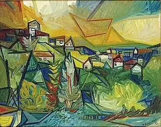 After the war, In 1929, Karl would eventually be reunited with his father Willie, who had saved enough money to send for Karl. They had limited contact between each other due to Willie's illness. Karl would join his father at the Schmidt Lithograph and work there. Five years later, Karl would marry a woman called Naomi Pratt and would eventually have a son named Nicholas. Karl was eventually fired from his job due to his pro-union beliefs, which left him the chance to pursue his most important option in his career; to work for the WPA as an easel painter. In 1936 the WPA employed Karl Baumann as an easel painter. Due to his environment which consisted of being surrounded by artists, Baumann invested all of his energy to his paintings and began to explore nature more. Baumann began to change his painting style as well. In 1940, Baumann won a competition in the U.S. Maritime Commission for one of his art panels. He exhibited his works at the Golden Gate International Exposition, the Palace of the Legion of Honor, the San Francisco Museum of Modern Art, and the Metropolitan Museum of Art in New York City.[5] He began to gain a reputation as a leading Californian Abstract Expressionist. Near the late 1940s, Baumann became highly respected in the Bay Area, specifically in the art community. He was hired in 1947 by the California College of the Arts and Crafts as a professor of painting, and also taught for a time at the San Francisco Museum of Modern Art.[6] Baumann was somewhat neutral about his impact on his students despite many of his students being influenced by him and some were inspired. It is noted that Baumann's early works are in the style of German Expressionists, before his later works became more abstract.
