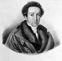 In 1813 Karl began studies in philosophy and medicine in Heidelberg. Here, in 1817, he participated in the Old Heidelberg Burschenschaft as a friend of Heinrich Carl Alexander Pagenstecher. He had contacts with Jean Paul and attended inter alia lectures by Georg Wilhelm Friedrich Hegel, becoming a follower of his. In 1817 he completed his studies and, in 1818, passed his exams with distinction. For his work on the subject, Die Struktur und das Leben der Venen he was awarded a prize by the university. In 1818, he probably participated in the founding of the first Freiburg Burschenschaft, having been in Freiburg a member and mentor of Genossenschaft/Verein zur Bearbeitung wissenschaftlicher Gegenstände,[1] from which the Freiburg Burschenschaft developed. When he then went to Vienna for further studies, he was a corresponding member of the Old Freiburg Burschenschaft. In Vienna he also got to know Karl Ludwig Sand through his burschenschaft connexions. In 1819, Sand murdered the poet, August von Kotzebue, Marx was in Vienna on 19 June 1819 for burschenschaft-related activities and was taken into custody for nine months and then released without charge. In 1820 he was awarded his doctorate in medicine in Jena. Thereafter he went to Göttingen, where he worked as an assessor at the Göttingen University Library, received his habilitation in 1822 at the Faculty of Medicine, became a professor extraordinarius in 1826 and a professor ordinarius in 1831. He taught there for the rest of his life, but also had a doctor's practice. In Göttingen he met Heinrich Heine, his discussions about medicine and his treatise, Goettingen in medicinischer, physischer und historischer Hinsicht[2] are mentioned in his travel journal, Die Harzreise.[3] Heine was also treated by Marx in Göttingen.[4]
