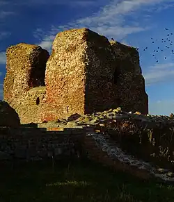 The exhibition at the visitors centre is unstaffed. Its purpose is to convey aspects of local nature and natural history from Mols Bjerge National Park on the southern part of the Djursland peninsula in Denmark. The main themes are prehistoric times, the Kalø Castle Ruin and wildlife and hunting round Kalø. The latter related to a research station under Aarhus University that is part of the Kalø Estate.[2] The visitors centre includes a series of posters, a model of the medieval Kalø Castle, and an area for children. Here one can hear taped stories, such as about how the Swedish king, Gustav Vasa, was imprisoned at Kalø Castle in 1518-19, until he escaped from the castle peninsula by wading through the sea during the night at low tide.[3]