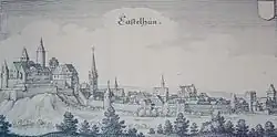 Living at the castle until 1594 were various bailiffs (Amtmänner) who represented the joint lords’ (the County of Veldenz, the Margraviate of Baden, Palatinate-Simmern and Palatinate-Zweibrücken) interests. Margrave Edward Fortunatus was driven out of Baden-Baden in 1594 and sought refuge at the castle, thereby making it a residence once again. In the course of the Thirty Years' War (1618–1648), the town was occupied by Spaniards, Swedes, Lorrains, Hessians and Frenchmen. Great Plague epidemics raged.