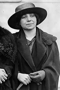 At Éamon de Valera's request,[3] Moloney was one of a delegation of seven republicans, with Stack, Countess Markievicz, and Michael O'Flanagan, which travelled to the United States to raise funds and publicity for the republican cause from April to June 1922. While on this tour, she also spoke at numerous public meetings.[1] At the outbreak of the Irish Civil War, she was one of three women, including Muriel MacSwiney and Linda Kearns,[3][4] who stayed behind with the relocated anti-treaty headquarters garrison in the Hammam Hotel after they lost the Four Courts. The women survived a week-long siege under heavy shelling by the forces of the Free State. From June 1922, she was an active member of the Irish Republican Prisoners' Dependants' Fund, taking the role of general secretary from December 1922 until September 1924, which saw her travel across Ireland to distribute relief. During this work, she was arrested for possession of papers relating to the Fund, and was imprisoned with the general population in Cork County Jail. She went on hunger strike until she and colleague were transferred to the Cork City Jail in early 1923. Between September 1924 and April 1925, she toured Australia raising money for the Fund.[1][3][5]