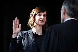 Kathy Hoffman (born 1985/1986)[1] is an American educator, speech-language pathologist, and politician who served as the Arizona Superintendent of Public Instruction from 2019 to 2023. A member of the Democratic Party, she took her oath of office with her hand placed on top of the children's book Too Many Moose, which she states holds special significance for her and her former students.[2]