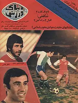 ![]() Kazem Gholami at the left bottom corner of Donyaye Varzesh Magazine cover in 1972 | |||||||||||||||||||||