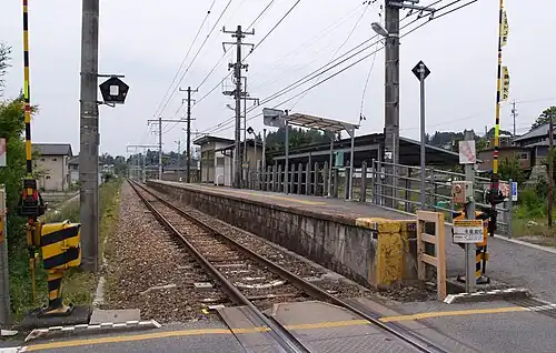 1. ^ a b c d e Shinano Mainichi Shimbun (2011). Nagano Prefecture All Railway Stations, revised edition (長野県鉄道全駅 増補改訂版) (in Japanese). Shinano Mainichi Shinbun Publishing. ISBN 9784784071647.