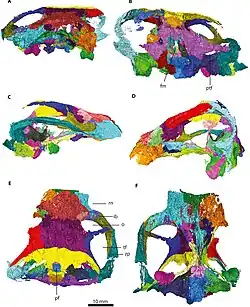 - ^ a b c d e f g h i j k Angielczyk, K.D.; Benoit, J.; Rubidge, B.S. (2019). "A new tusked cistecephalid dicynodont (Therapsida, Anomodontia) from the upper Permian upper Madumabisa Mudstone Formation, Luangwa Basin, Zambia". Papers in Palaeontology. 7: 405–446. doi:10.1002/spp2.1285. S2CID 210304700.
