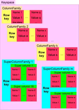 - ^ "Overview: Terminology/Abbreviations: Keyspace". Cassandra Wiki. Archived from the original on 2013-07-23. Retrieved 2011-03-31.