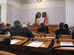 The Kharkiv Oblast Council (Ukrainian: Харківська обласна рада) is the regional oblast council (parliament) of the Kharkiv Oblast (province) located in eastern Ukraine. The council is composed of 120 members and is situated in the oblast's administrative center Kharkiv. Council members are elected for five year terms. In order to gain representation on the council, a party must gain more than 5 percent of the total vote.[4]