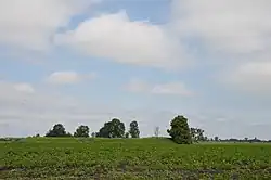 These places seem to have held exceptional significance in ancient times, as evidenced by the vast number of burial mounds in the vicinity. Especially notable is the area of Hrubsk, where researchers counted 684 mounds there. In Hrubsk, in addition to numerous mounds, there are 4 ramparts with moats, which are fairly well preserved. One of them, 6 to 7 sazhen high, forms a circle enclosing an area of up to 300 square sazhen, creating a kind of citadel. It has a moat nearby, with a single entrance leading inside. Local residents claim that during the first Tatar invasion of Kyiv, about 40,000 people from the surrounding areas fortified themselves in this location, but all were killed after a short siege. Supposedly confirming this legend, coins contemporary with the Tatar invasions were found in Hrubsk, including a broad silver groschen minted in Prague, depicting the Bohemian king Wenceslaus I of Bohemia, who reigned from 1230 to 1253.[8]