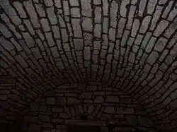 The 1788–91 Eglinton estate plans of holdings in Kilmaurs show an entrance running straight up to The Place from near the bridge over the Carmel Water on the Kilmaurs Road; the formal pleasure gardens are illustrated as a square of three by three equal size squares with paths dividing them up. These gardens lay on the church side of the house, slightly offset towards Tour House.[53] In 1945 the vaulted ruins were being used as stores for agricultural tools and such-like.[51]