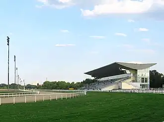 Kincsem Park is a major horse racing venue in Budapest, Hungary. The 84-hectare park, named after the racehorse Kincsem, can accommodate thoroughbred racing and harness racing, and can also be configured as a concert venue.[1] Although the track experienced a drop in attendance in recent years, it has enjoyed new popularity among racing fans due to the success of Hungarian racehorse Overdose.[2] In August 2009, Madonna performed in front of a sold-out crowd of 41,000 fans as a part of her Sticky & Sweet Tour.