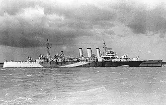 Operation Ostfront was an attempt by the German Kriegsmarine to intercept the expected Arctic convoys. In late December 1943, there was a Russia-bound convoy JW 55B consisting of 19 cargo vessels under the command of the Commodore, retired Rear-Admiral Maitland Boucher, accompanied by a close escort of two destroyers, HMCS Huron[2] and HMCS Haida,[3] among others, and an ocean escort of eight Home Fleet destroyers led by HMS Onslow. Also in the area was convoy RA 55A, returning to the United Kingdom from Russia, consisting of 22 cargo ships, accompanied by a close escort of two destroyers and four other vessels, and an ocean escort of six Home Fleet destroyers led by HMS Milne. It had arrived safely at Murmansk with its normal escorts and the additional protection by Force 1, commanded by Vice Admiral Robert Burnett, consisting of the cruiser HMS Belfast, the flagship, and the cruisers HMS Norfolk and Sheffield.[4]