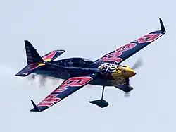 Chambliss enjoys performing in traditional airshows throughout the year when he is not training or competing. Since 2003, he takes part at the international aerobatic competition Red Bull Air Race World Series as a member of the Red Bull team along with his teammate Hungarian Péter Besenyei. He was the champion of 2004,[2] and finished the 2006 Series as the champion again with four wins of eight rounds in his Zivko Edge 540 aircraft.[2] To stay in shape for enormous g-forces and exact timing, he runs four miles five days a week.