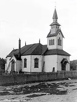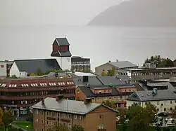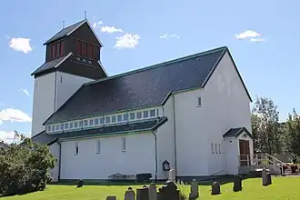 Kirkenes Church (Norwegian: Kirkenes kirke) is a parish church of the Church of Norway in Sør-Varanger Municipality in Finnmark county, Norway. It is located in the town of Kirkenes, just off the European route E06 highway. It is one of the churches for the Sør-Varanger parish which is part of the Varanger prosti (deanery) in the Diocese of Nord-Hålogaland. The white, concrete church was built in a long church style in 1959 by the architect Sofus Hougen. The church seats about 275 people.[1][2]