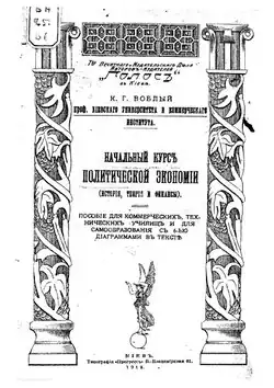 From the 1910–1911 academic year, Voblyi became dean of the economic department and headed it until 1917. During this period he prepared and published a number of textbooks: "Political Economy", "Fundamentals of Insurance Economics", "Statistics. Handbook for lectures ". At the end of 1917, Voblyi became the rector of the Kyiv Commercial Institute. It is thanks to him organizational activity within the walls of this educational institution October 13, 1918, was the First All-Ukrainian Congress of Economists and Statisticians. In 1918–1921 he was a professor at Tavriya University. Later he became the chairman of the Society of Economists at the All-Ukrainian Academy of Sciences.[3]
