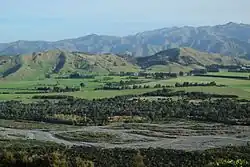 The Kowhai River is a river of the northeast of New Zealand's South Island.[1] It flows south from the slopes of Manakau in the Seaward Kaikōura Range, turning southeast as it reaches its narrow coastal plain. The Kowhai River flows to the ocean to the west of the Kaikōura Peninsula, three kilometres west of the town of Kaikōura.