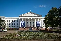 Kramatorsk (Ukrainian: Краматорськ, pronounced [krɐmɐˈtɔrʲsʲk] ; ⓘRussian: Краматорск) is a city and the administrative centre of Kramatorsk Raion in Donetsk Oblast of the Donbas region of eastern Ukraine. Prior to 2020, Kramatorsk was a city of oblast significance. Since October 2014, Kramatorsk has been the provisional seat of Donetsk Oblast, following the events surrounding the war in Donbas.[2] Its population is 147,145 (2022 estimate).[3] It is an important industrial and mechanical engineering center in Ukraine. Kramatorsk is on the banks of the Kazennyi Torets, a right tributary of the Siverskyi Donets.
