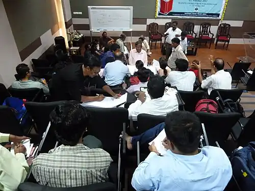 Reference sources like general and subject dictionaries, encyclopedias, Who's Who directories, biographical dictionaries, gazetteers, atlases, travel guides and various other reference sources are available for users.[2] Books for competitive examinations and valuable books on different subjects also form the part of this collection. Students and research scholars also utilise the library.