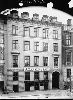 The next owner of the property was the piano manufacturer J. Larsen & Søn. The company was founded by Jørgen Larsen (1822–1899) in 1855. Ownership of the company was transferred to his sons Otto Larsen (1861-)andg Charles Larsen (1866-) in 1907. The company was based at Kronprinsessegade 32 until at least 1910.[23]
