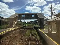 The station consists of two opposed ground-level side platforms connected by a footbridge. The station is unattended.