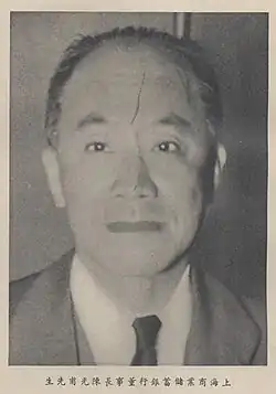 Kwang Pu Chen[1] (Chinese: 陳光甫; pinyin: Chén Guāngfǔ; 1880 – July 1976) was a Shanghai-based Chinese banker and State Councillor. He was the founder of the first modern Chinese savings bank, the Shanghai Commercial and Savings Bank, the Shanghai Commercial Bank, a travel agency, as well as the China Assurance Corporation Ltd.