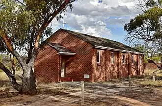The townsite was selected in 1912 due to its position near Coaring Spring and the townsite was gazetted in 1913, the same year the railway was opened. The station was initially named as Koarin but later renamed as Kwolyin.[2] Kwolyin's State Hotel was constructed in 1914. It was destroyed by arson in February 1992. The gutted hotel building was demolished in 1992.[3][4]