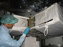 Before LOCAD-PTS was launched to space, it was tested extensively in simulated microgravity with the use of parabolic flight, to verify nominal function of the instrument and sample handling procedures.[10][11] It was also used for several years on scientific expeditions to study microbial life in extreme environments on Earth. These extreme environments included Svalbard in the high Arctic (80N latitude) during the NASA-sponsored Arctic Mars Analog Svalbard Expedition (AMASE),[12][13][14][15] volcanoes in Kamchatka, far east Russia, during Russian-NASA Astrobiology Institute (NAI) Expeditions in 2004 and 2006,[16][17] the desert of Arizona during the NASA Desert Research and Technology Studies (Desert RATS) of 2005 and 2006,[18][12][14] and the underwater habitat Aquarius in the Florida Keys during NASA Extreme Environment Mission Operations (NEEMO) Expedition 5, under command of astronaut Peggy Whitson,[19][20] and Mount Everest.[21]