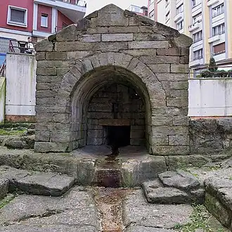 The Foncalada is a fountain of potable water located outside the city walls of Oviedo, Asturias, Spain; it was built by king Alfonso III of Asturias in the 9th century. This building remains the only surviving civil architectural item for public use of the Early Middle Ages. Its name was given after the inscription in Latin: fontem calatam written on it. Built in Pre-Romanesque style, it has been included with other Asturian Pre-Romanesque sites on the UNESCO World Heritage Site List since 1998.[1]