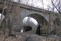 The Old Road was the site of the DL&W's most infamous train wreck. On June 16, 1925, a passenger train carrying German-American tourists from Chicago to Hoboken was slated to run over the Cut-Off, but in order to avoid freight trains on the line the special train was diverted onto the Old Road to Port Morris.[2] At Rockport, New Jersey, the train struck debris washed onto a road crossing by a heavy thunderstorm. The train derailed, and killed 47 passengers and three trainmen.