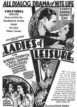 Ladies of Leisure is a 1930 American pre-Code romantic drama film directed by Frank Capra and starring Barbara Stanwyck, Ralph Graves, and Lowell Sherman. The screenplay by Jo Swerling is based on the 1924 play Ladies of the Evening by Milton Herbert Gropper, which ran for 159 performances on Broadway.[1]