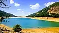 Lake Aguelmam Azegza (in Central Atlas Tamazight: ⴰⴳⵍⵎⴰⵎ ⴰⵣⴳⵣⴰ[1]) is a natural lake in Morocco covering an area of 40 hectares and reaching a depth of 25 metres (82 ft). It is situated in the village of Aguelmam Azegza at an altitude of 1,500 metres (4,900 ft) above sea level.[2] The community takes its name from the lake, which is named after the Amazigh people and translates as the green lake. The lake is located in the Khénifra Province of the Béni Mellal-Khénifra region, approximately 30 kilometres (19 mi) from the city of Khénifra in the western Middle Atlas.[3] The lake is renowned for its considerable influx of tourists during the summer months.[4]