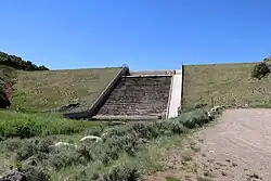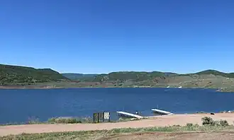 The dam, called Big Beaver Dam, (National ID # CO00962) is a 102-foot tall earthen dam built in 1964.[2] In 2022, the dam was classified as a "high hazard dam" by the State of Colorado due to the property damage it would cause if breached. Its quality has declined over the years.[8] Beginning in 2024, Colorado Parks and Wildlife has begun draining the reservoir in order to facilitate the dam repairs. Public access will end beginning 25 November 2024; repairs have been scheduled to begin in Spring 2025.[9]