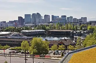 ![]() Lake Bellevue and the Downtown Bellevue skyline, seen from the east | |