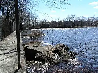 Lake Innisfree (also known as Lake Isle or Interlaken, and originally as Reservoir No. 1)[1] is a man-made lake and former reservoir[2] in the city of New Rochelle and the town of Eastchester, in Westchester County, New York.[1] Its eastern end abuts the Hutchinson River Parkway. The lake takes its name from the poem Lake Isle of Innisfree by W. B. Yeats.[2]