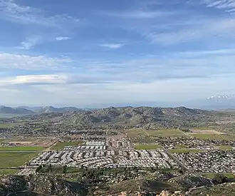 ![]() Lakeview Mountains viewed from Double Butte, the community of Homeland, California, pictured here, lies to the south of the Lakeview Mountains | |