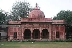 Lal Bangla is one of the most noteworthy and interesting historical monuments of the Mughal period. There is a debatable matter about the identification of the character who is buried down under the structure of Lal Bangla. A large number of historical researches suggests that the mausoleum belongs to the daughter and mother of a Mughal emperor named Shah Alam. The name of the daughter of Shah Alam is known to be Begam Jaan and of his mother as Zinat Mahal Sahiba or Lal Kunwar.[3]