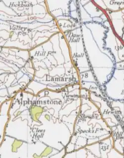 - "LAMARSH, a parish, with a village, in the district of Sudbury and county of Essex; adjacent to the river Stour at the boundary with Suffolk, 2½ miles NW of Bures r. station, and 4 SSE of Sudbury."[4]