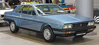 The Lancia Gamma (Tipo 830), stylised Lancia γ, is an executive car (E-segment in Europe) manufactured and marketed by the Lancia subdivision of Fiat. Following its debut at the 1976 Geneva Motor Show[2] as Lancia's new flagship, the Gamma was marketed as a 4-door fastback saloon known as the Berlina (1976–1984) and as a 2-door coupé (1977–1984), both designed by Pininfarina – with 15,272 and 6,790 manufactured, respectively.[4] The Gamma superseded the Lancia 2000.[5]