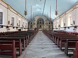It has a main retablo and two smaller ones on its sides. The lower level of the huge retablo contains the image of Saint William, the parish's patron saint.[2]