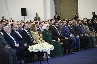 - ^ "حضور رئيس الجمهورية العربية السورية السيد أحمد الشرع وعقيلته، حفل إطلاق الهوية البصرية السورية الجديدة، بمشاركة عدد من الوزراء والمحافظين" [President of the Syrian Arab Republic, Mr. Ahmed al-Sharaa, and his spouse attended the launch ceremony of the new Syrian visual identity, with the participation of several ministers and governors]. Al-Jamahir (in Arabic). 4 July 2025. Archived from the original on 3 July 2025. Retrieved 4 July 2025.