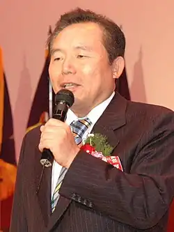 In 1997, he was defeated by Lee Hoi-chang in the New Korea Party's election to choose its presidential candidate. Afterwards, he resigned from the party to create the New People's Party to launch his ultimately unsuccessful run for the presidency. In 2002, he was one of the leading contenders to run for president as the nominee of the Millennium Democratic Party but resigned after being defeated by the ultimate presidential victor Roh Moo-hyun. In 2007, Rhee again ran for president as the nominee of the Democratic Party but was defeated by Grand National Party candidate Lee Myung-bak. He has stayed active in politics and in July 2014 was elected to the Supreme Council of Saenuri Party, then ruling party of the Republic of Korea.[2] He has a special nickname: Phoenikje [a combination of Phoenix and (Rhee in) JE]. The nickname derives from his ability to change political party affiliation 16 times[3] and be elected to the National Assembly a total of six times despite numerous past defeats in presidential elections and the fall of his affiliated parties.[4] He ran for governor of South Chungcheong Province in the 2018 local elections but lost to Yang Seung-jo of the Democratic Party of Korea.