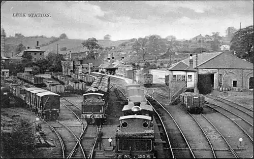 The original station opened in 1849 by the North Staffordshire Railway on the Churnet Valley Line, which connected the towns of Uttoxeter, Leek and Macclesfield. Other lines that the original station connected to were both the Stoke-Leek line which connected Leek to the villages of Endon, Stockton Brook, Fenton Manor and Stoke-On-Trent and the Waterhouses branch line which connected Leek to the villages of Cauldon and Ipstones.