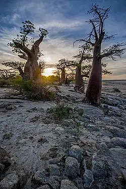 - ^ Riedel, Frank; Erhardt, Sebastian; Chauke, Chrispen; Kossler, Annette; Shemang, Elisha; Tarasov, Pavel (2012-03-06). "Evidence for a permanent lake in Sua Pan (Kalahari, Botswana) during the early centuries of the last millennium indicated by distribution of Baobab trees (Adansonia digitata) on "Kubu Island"". Quaternary International. 253: 67–73. Bibcode:2012QuInt.253...67R. doi:10.1016/j.quaint.2011.02.040. ISSN 1040-6182.