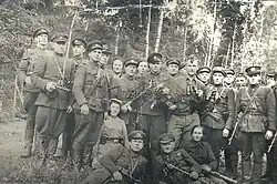 Leonardas Grigonis, also widely known by his codename Užpalis (14 December 1905 – 22 July 1950) was a teacher and anti-Soviet Lithuanian partisan, and the second commander of their Prisikėlimas military district. He was a teacher around the Rokiškis area as well as an active member of the Lithuanian Riflemen's Union. Grigonis joined the partisans in 1944. He soon became the commander of the military district, also signing the Lithuanian Partisans Declaration of 16 February 1949. He was also known by his codenames Žvainys, Krivis, and Danys.[1]