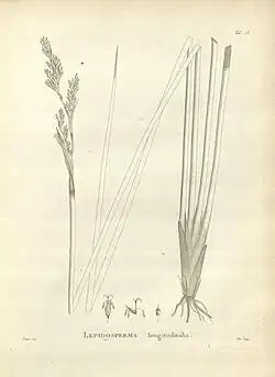 Lepidosperma longitudinale is commonly known as the pithy sword-sedge or pith saw-sedge. It is an evergreen species of sedge that is native to swampy areas of most Australian states.[1] It was described by French botanist Jacques Labillardière in 1805.