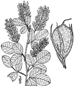 Lespedeza hirta, the hairy lespedeza or hairy bush clover, is a perennial forb native to Ontario and the eastern United States. It grows at most three feet high. It has inconspicuous small white blooms in the summer and prefers average to dry soil. It is noteworthy for the number of Lepidoptera species it supports. It is a larval host to the bella moth, black-spotted prominent moth, cloudless sulpher, confused cloudy-wing, eastern tailed blue, gray hairstreak, southern cloudywing, and zarucco duskywing.[3]