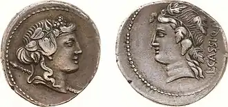 In ancient Roman religion, the Liberalia (March 17) was the festival of Liber Pater and his consort Libera.[1] The Romans celebrated Liberalia with sacrifices, processions, ribald and gauche songs, and masks which were hung on trees.