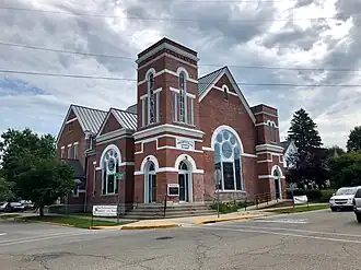 Liberty Residential Historic District is a national historic district located at Liberty, Union County, Indiana. The district encompasses 67 contributing buildings in a predominantly residential section of Liberty. It developed between about 1841 and 1920 and includes representative examples of Greek Revival, Italianate, Queen Anne, Colonial Revival, Bungalow / American Craftsman, and Ranch style architecture. Notable contributing buildings include the First Presbyterian Church (1889), Union County Public (Carnegie) Library (1915), John S. Nixon House (1879), John B. Macy House (1876), and Union County Seminary (1841).[2]